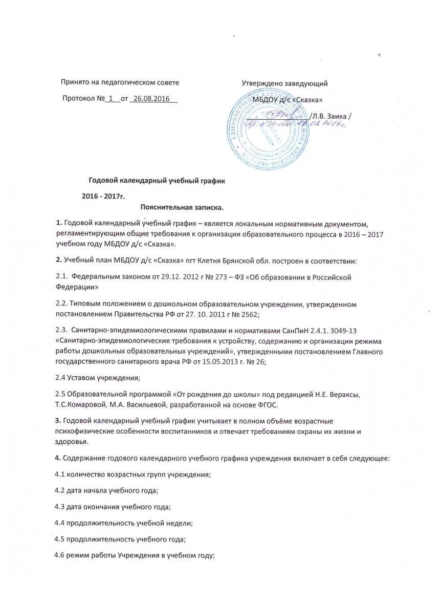 Годовой календарный учебный график 2016-2017г.